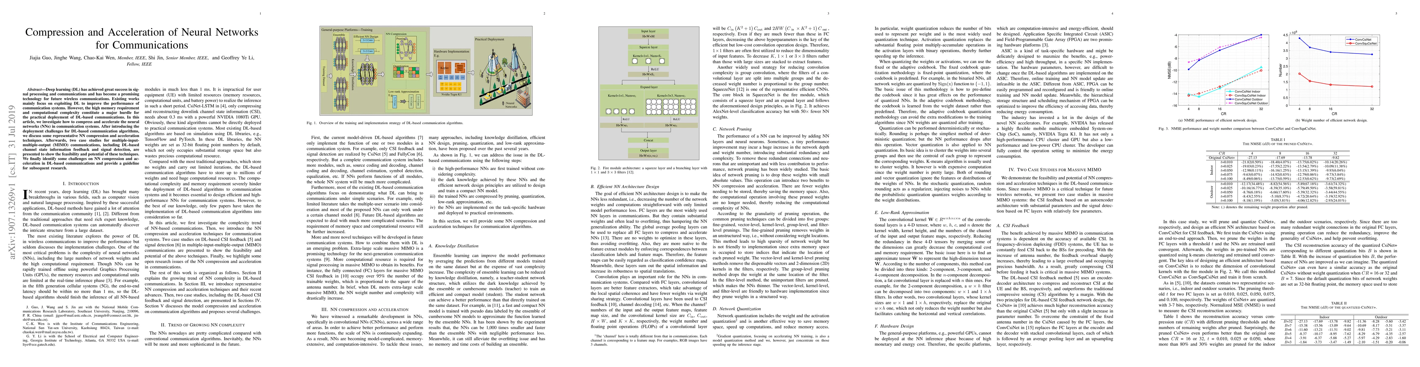 This paper explores methods to compress and accelerate neural networks for enhancing the efficiency of deep learning-based communication systems, addressing the high memory and computational demands. It presents case studies on MIMO communications and outlines future research directions to overcome current challenges.