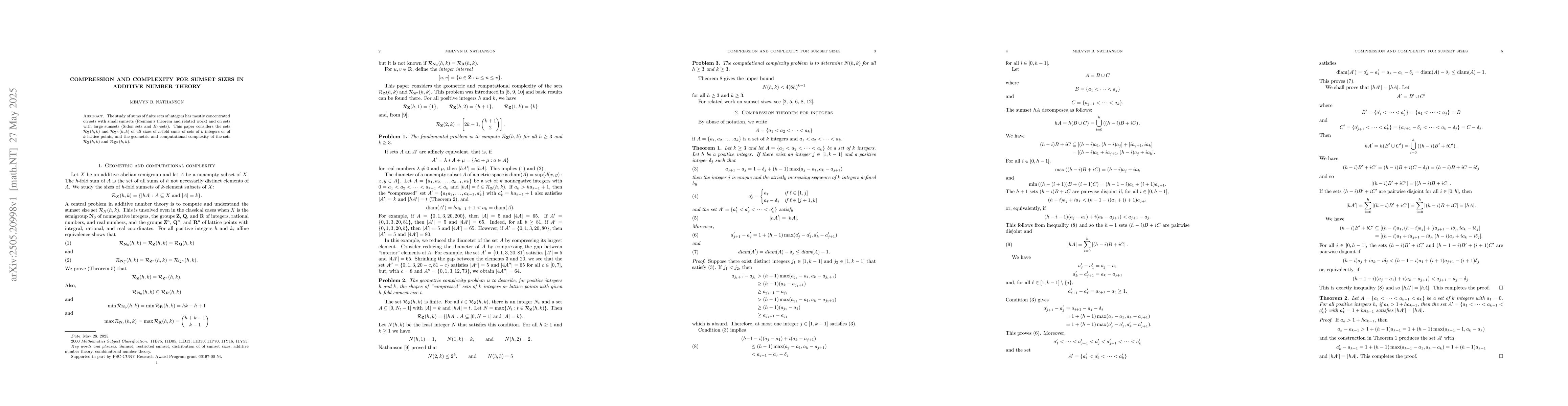 The paper investigates the geometric and computational complexity of the sets ${\\mathcal R}_{\mathbf Z}(h,k)$ and ${\\mathcal R}_{{\mathbf Z}^n}(h,k)$, which represent all sizes of $h$-fold sums of sets of $k$ integers or $k$ lattice points.
