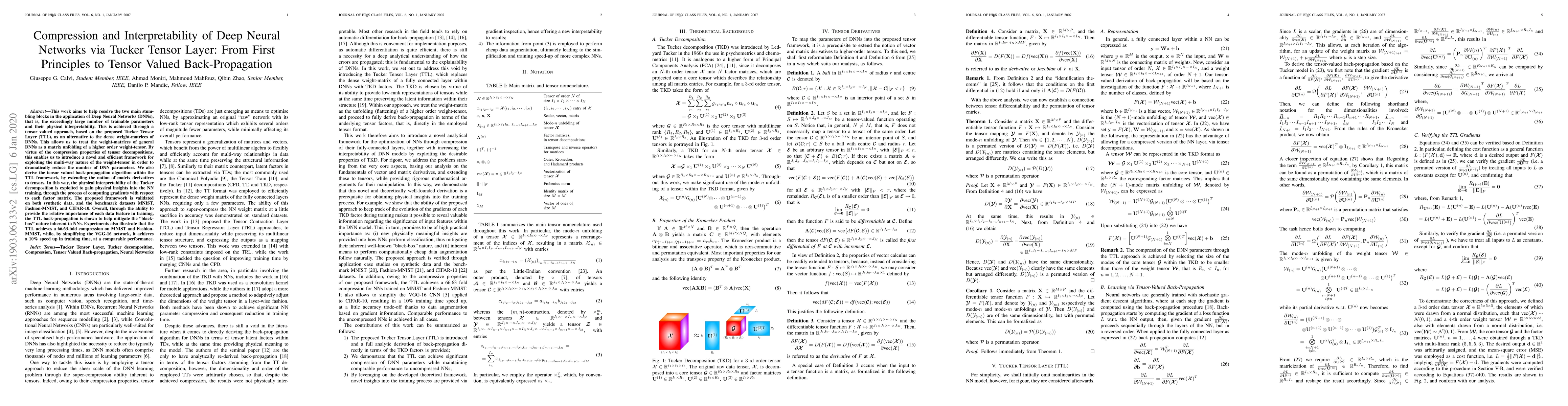 This paper introduces a new framework that reduces the number of parameters in deep neural networks by 66.63-fold and improves interpretability through tensor decomposition and back-propagation.