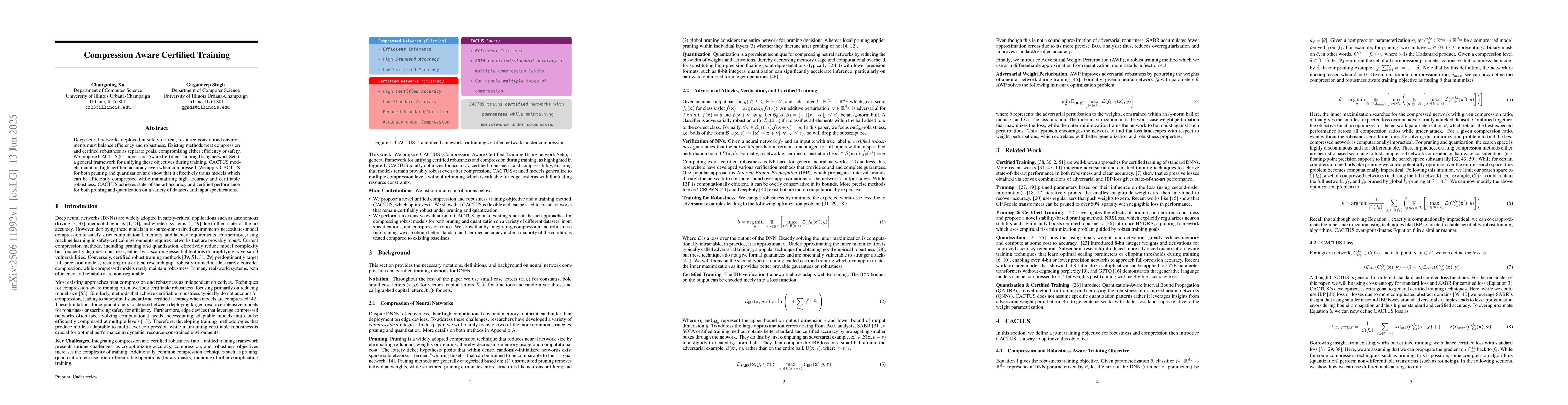 The research introduces CACTUS, a training framework that unifies compression and certified robustness for deep neural networks, ensuring high accuracy and safety in resource-constrained environments. It achieves state-of-the-art results in pruning and quantization across various datasets and input specifications.