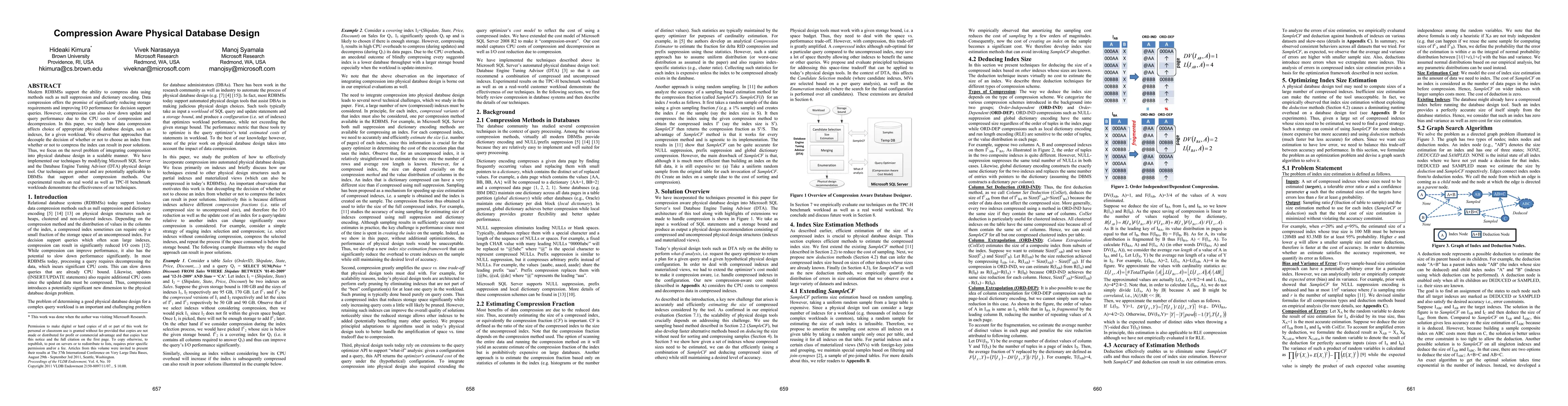 The paper studies the impact of data compression on physical database design, integrating compression decisions with index selection in a scalable manner. It modifies Microsoft SQL Server and the Database Engine Tuning Advisor (DTA) to implement these techniques, applicable to other compression methods in DBMSs.