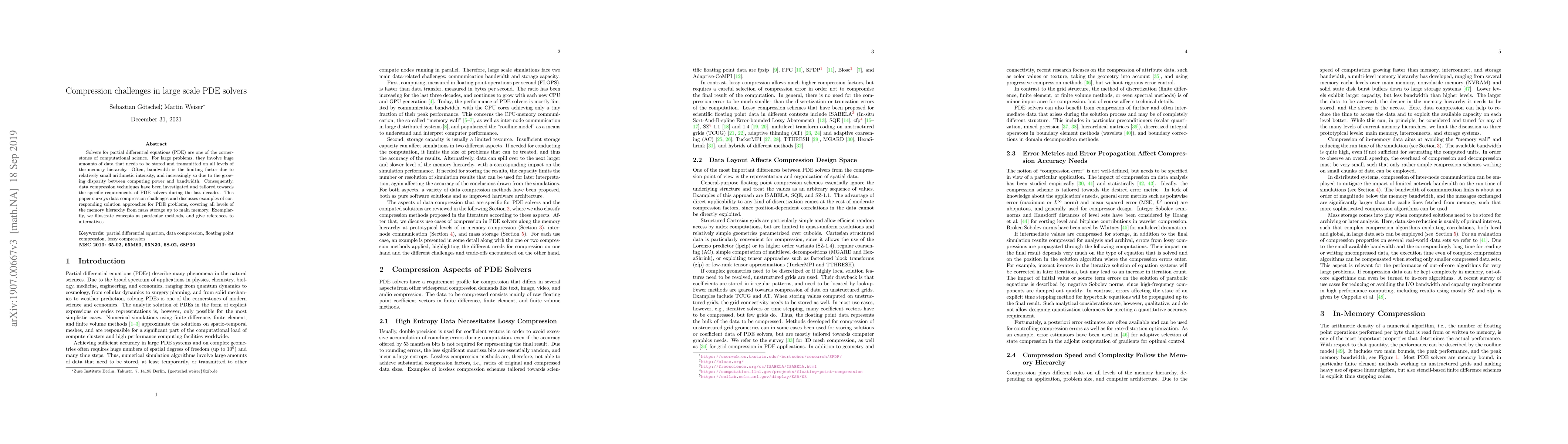 Researchers surveyed data compression techniques for partial differential equation (PDE) solvers to overcome bandwidth limitations in large-scale computations. They highlighted challenges and solution approaches at various levels of the memory hierarchy.