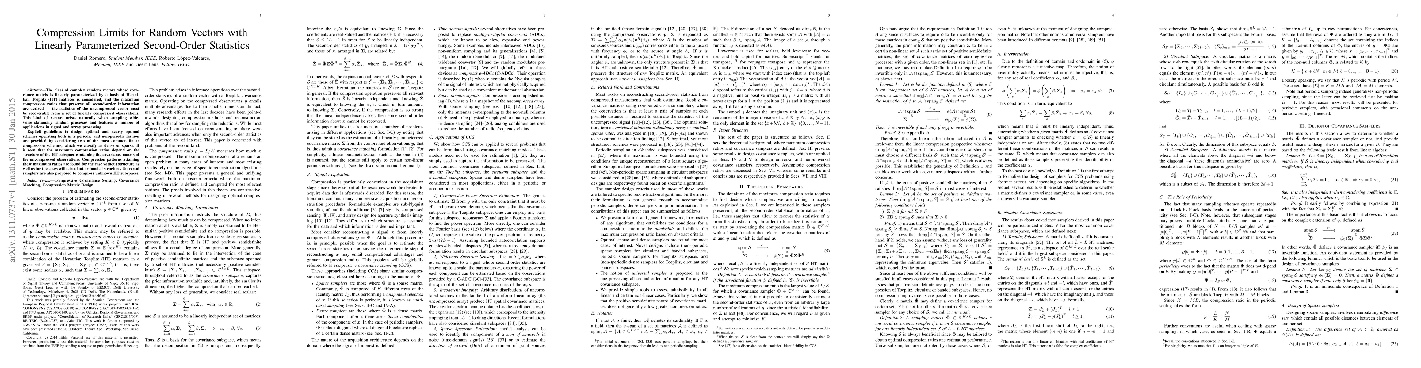 This paper derives maximum compression ratios for random vectors with linearly parameterized second-order statistics, providing guidelines for designing optimal compression schemes in signal and array processing applications.