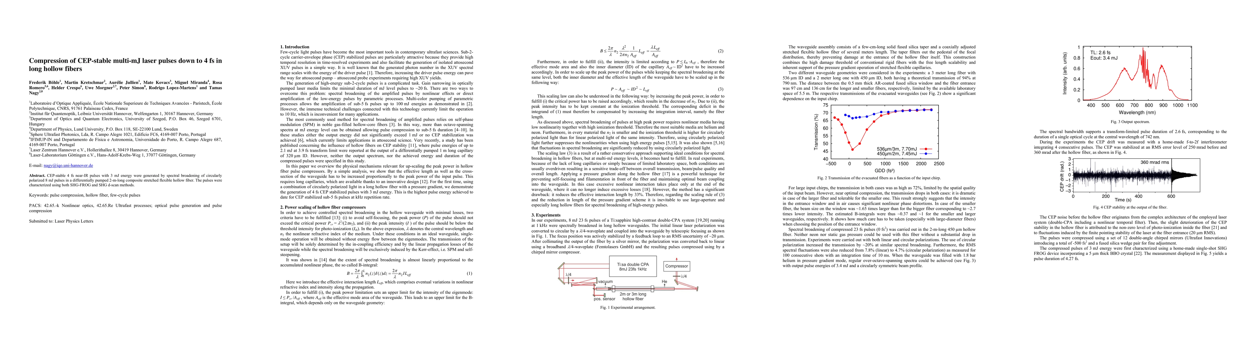 Carrier envelope phase stable 4 fs near-IR pulses with 3 mJ energy were generated by spectral broadening of circularly polarized 8 mJ pulses in a differentially pumped 2 m long composite stretched exible hollow ber. The pulses were characterized using both second-harmonic generation frequency-resolved optical gating (SHG-FROG) and SHG d-scan methods