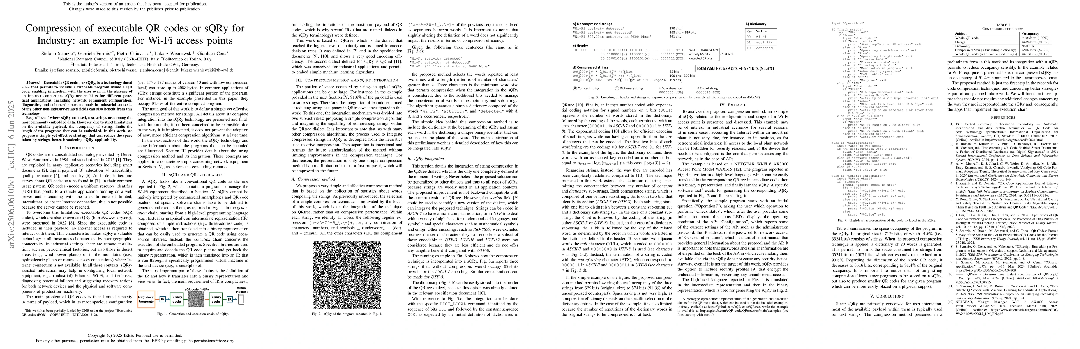 Researchers propose a method to reduce space in executable QR codes (sQRy), increasing their applicability in industries and potentially other fields. This allows for more extensive use of sQRy in configurations, diagnostics, and manuals.