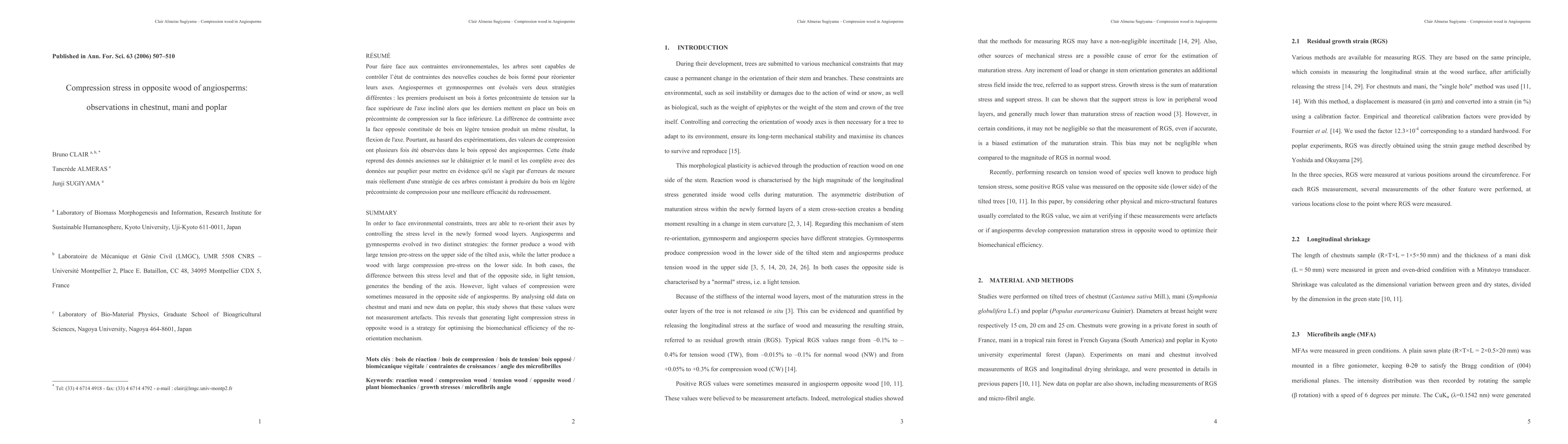 Research shows that angiosperms produce wood with compression stress on one side to improve re-orientation mechanism, challenging traditional understanding of the difference between gymnosperm and angiosperm wood properties.