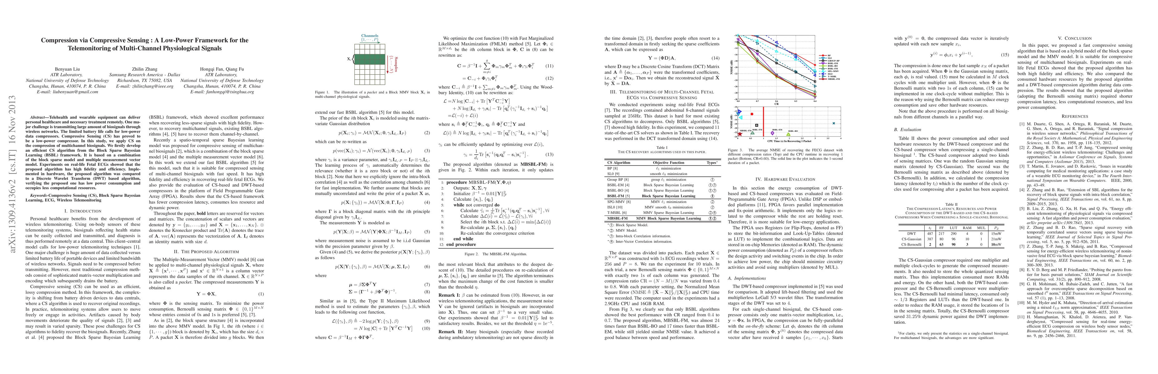 This study applies Compressive Sensing to compress multichannel biosignals for low-power telemonitoring, achieving high fidelity and efficiency in real-life ECG experiments.