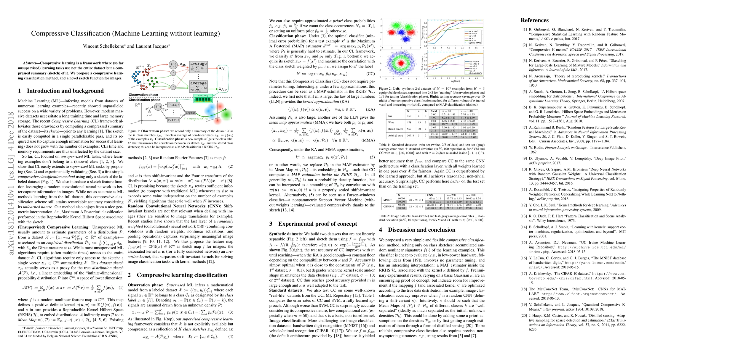 Compressive learning is a framework where (so far unsupervised) learning tasks use not the entire dataset but a compressed summary (sketch) of it. We propose a compressive learning classification method, and a novel sketch function for images.