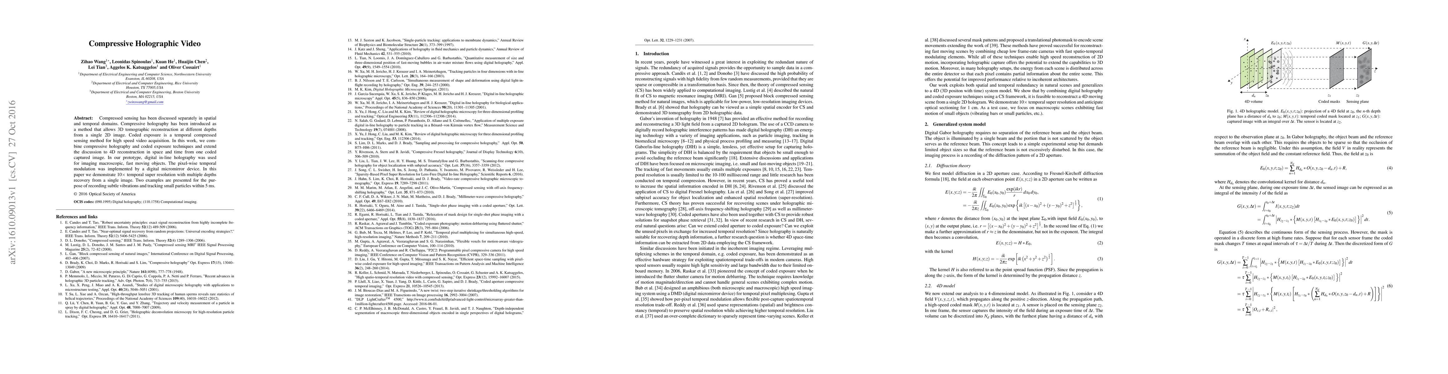 This paper combines compressive holography and coded exposure techniques to achieve 4D reconstruction in space and time from a single coded image, demonstrating $10\times$ temporal super resolution and multiple depths recovery, useful for recording vibrations and tracking particles.