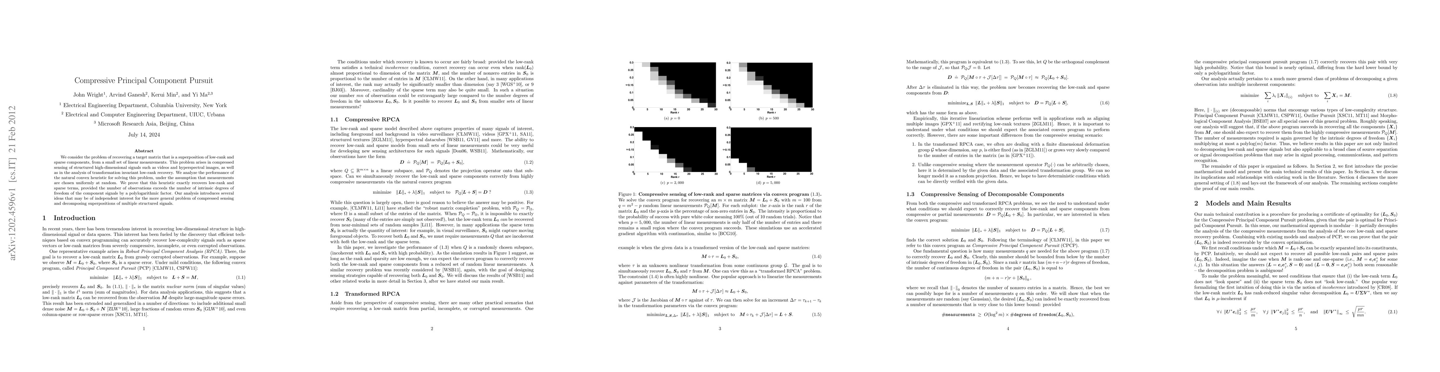 Researchers develop a method to recover a target matrix composed of low-rank and sparse components from limited measurements, showing that the natural convex heuristic can exactly solve this problem under certain conditions.