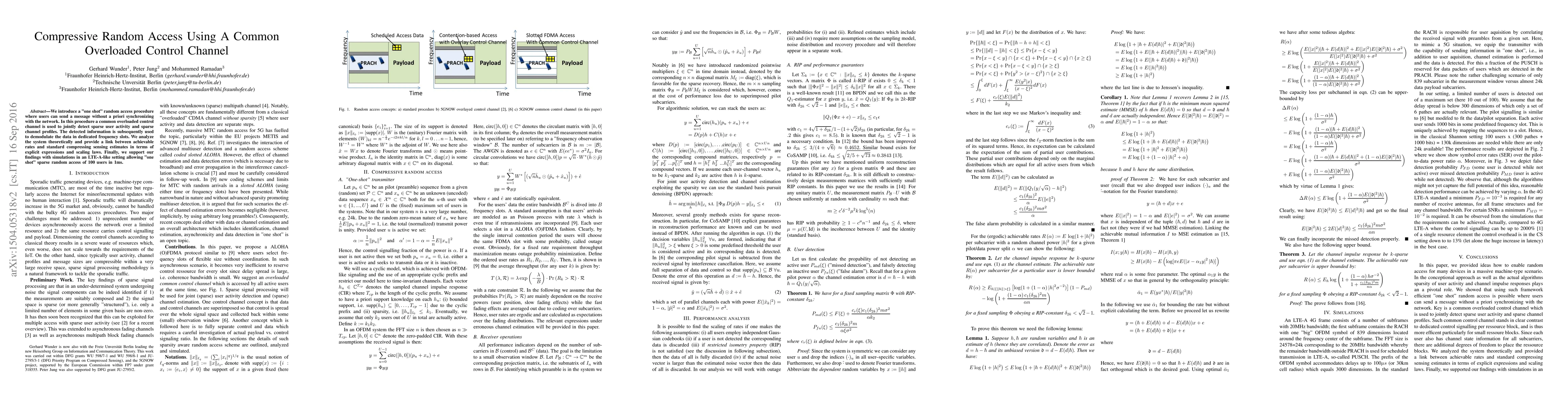 We introduce a "one shot" random access procedure where users can send a message without a priori synchronizing with the network. In this procedure a common overloaded control channel is used to jointly detect sparse user activity and sparse channel profiles. The detected information is subsequently used to demodulate the data in dedicated frequency slots. We analyze the system theoretically and provide a link between achievable rates and standard compressing sensing estimates in terms of explicit expressions and scaling laws. Finally, we support our findings with simulations in an LTE-A-like setting allowing "one shot" sparse random access of 100 users in 1ms.