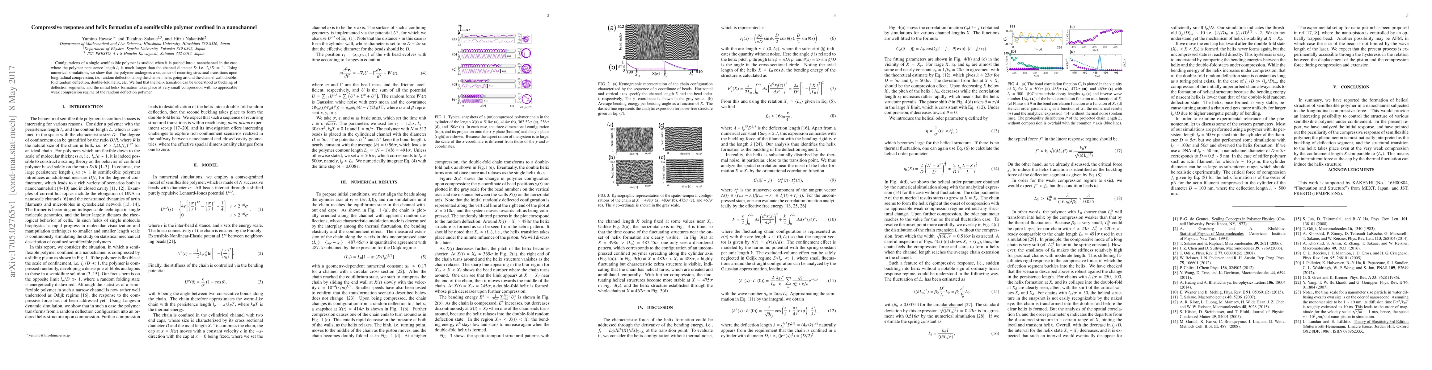 This research investigates the structural transitions of a semiflexible polymer confined in a nanochannel, demonstrating that it undergoes a series of recurring configurations including helical formations due to buckling under compression, with helix formation initiating at minimal compression.