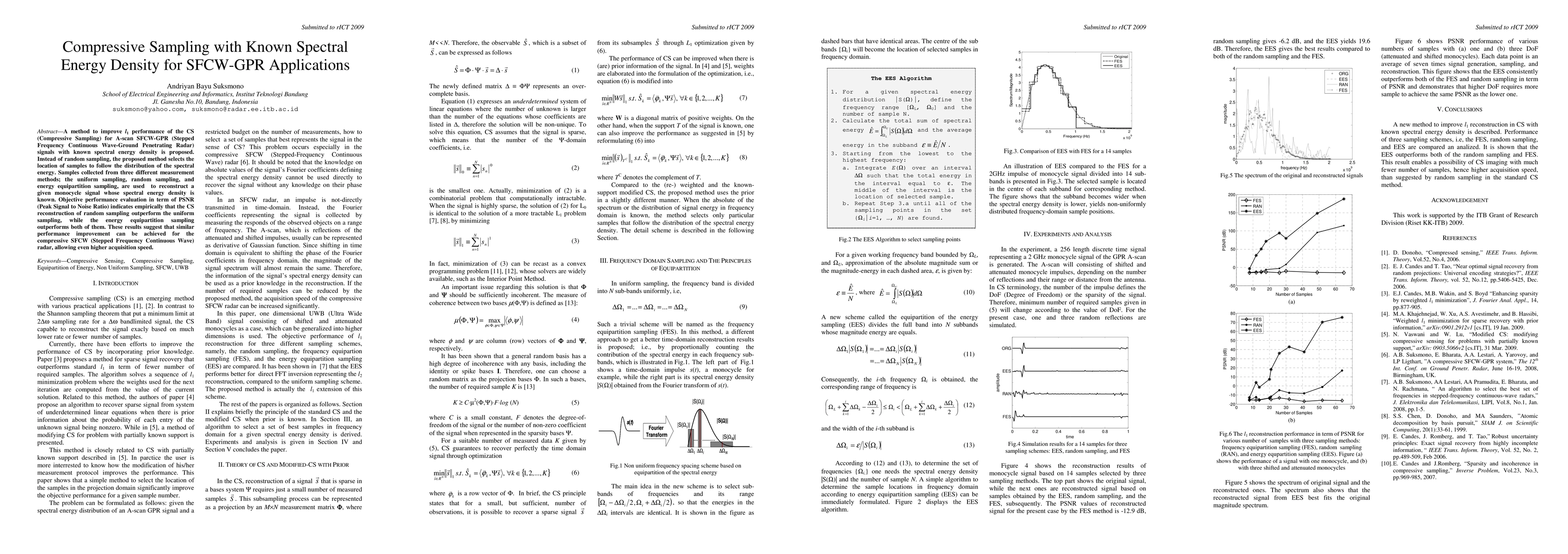 Researchers propose a method to improve Compressive Sampling for Ground Penetrating Radar signals by selecting sample locations based on spectral energy density, outperforming random sampling in objective evaluations.