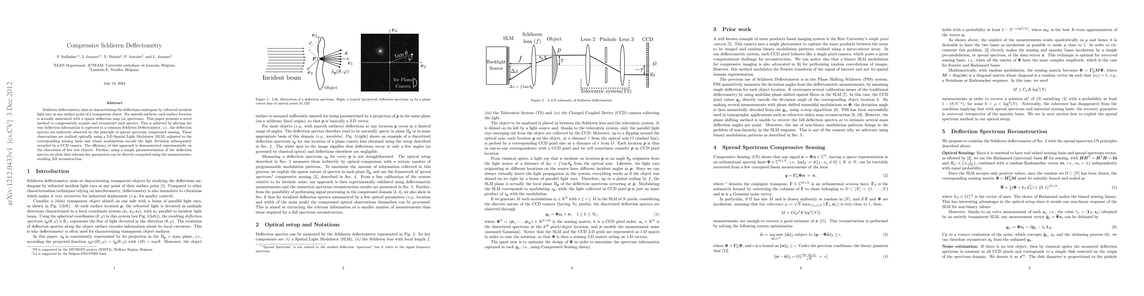 A new method compressively acquires and reconstructs deflection spectra of transparent objects using spread spectrum compressed sensing, enabling efficient observation of few test objects.