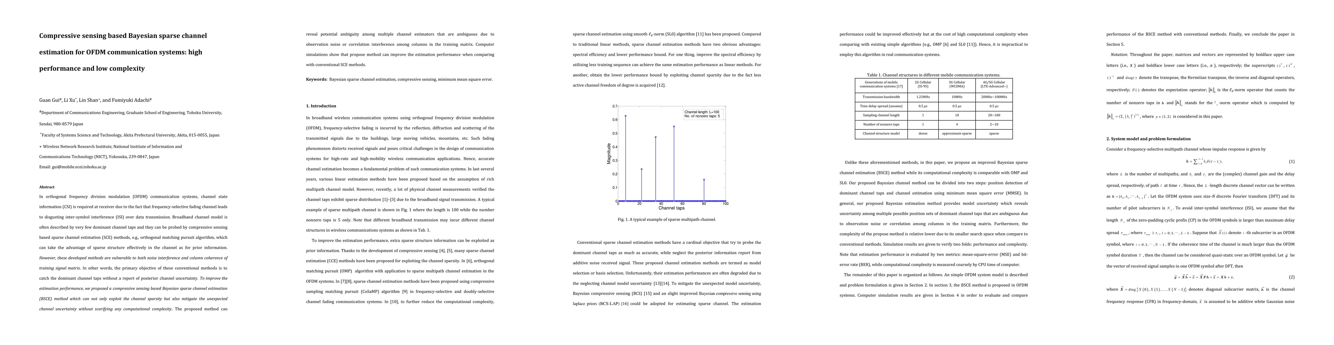 This paper proposes a compressive sensing based Bayesian sparse channel estimation (BSCE) method for OFDM systems to improve channel estimation performance by exploiting channel sparsity and mitigating uncertainty without increasing computational complexity. Simulation results show that BSCE outperforms conventional sparse channel estimation methods.