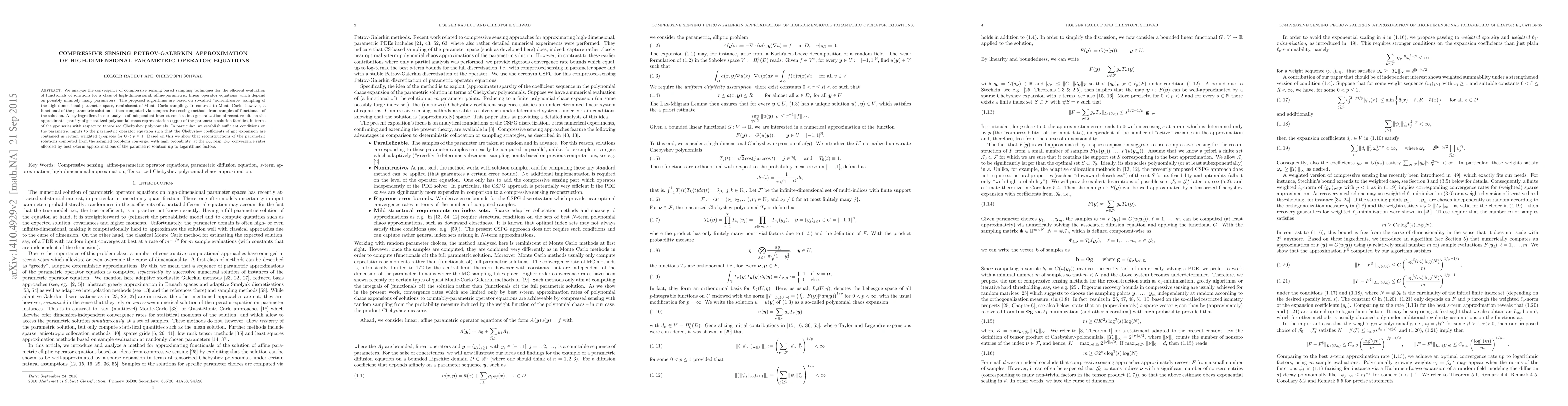 This paper investigates the convergence of compressive sensing techniques for evaluating functionals of solutions to high-dimensional parametric operator equations. It proposes a non-intrusive sampling method based on compressive sensing, showing that reconstructions converge at rates comparable to best $s$-term approximations, leveraging the approximate sparsity of generalized polynomial chaos representations.