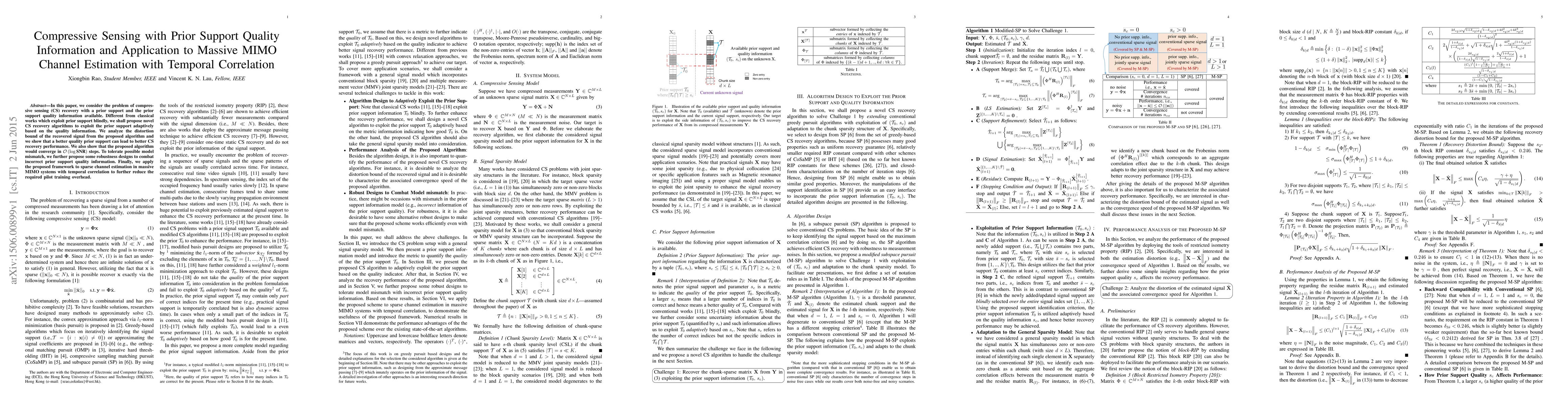 This paper proposes a novel approach to compressive sensing recovery that leverages prior support quality information for better performance in massive MIMO channel estimation with temporal correlation.