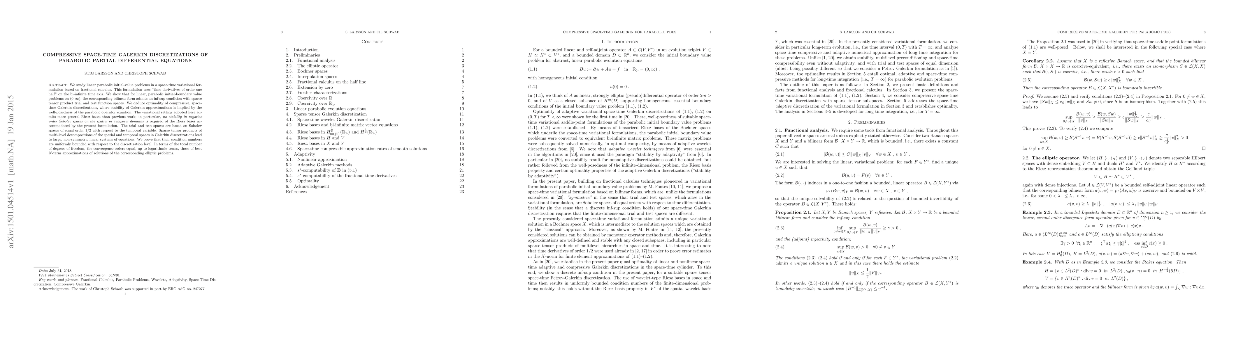 This paper investigates linear parabolic PDEs using fractional calculus in a space-time variational framework, demonstrating the inf-sup condition for sparse tensor product spaces. It proves the optimality of compressive space-time Galerkin discretizations, ensuring stability and bounded condition numbers for large, non-symmetric linear systems.