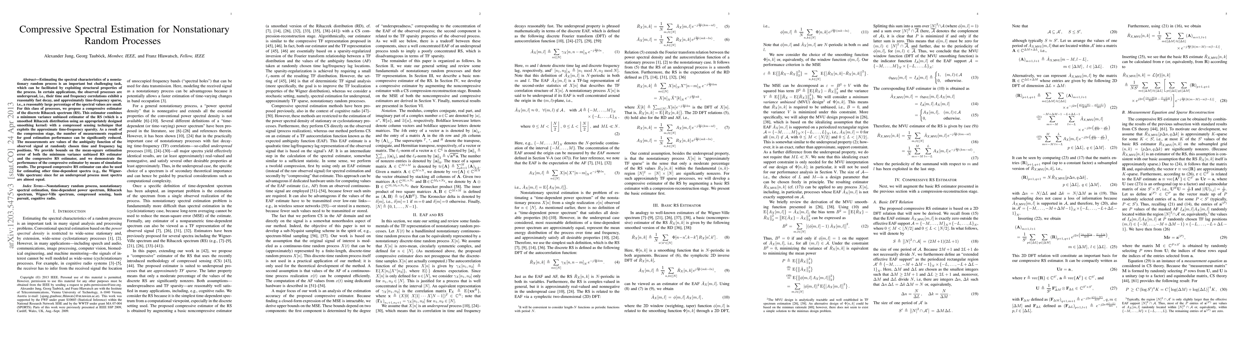 This paper proposes a compressive estimator for the spectral characteristics of nonstationary random processes, leveraging their underspread and time-frequency sparsity. The method combines a minimum variance unbiased estimator with compressed sensing to reduce measurement requirements, providing bounds on estimation error and demonstrating performance through simulations.