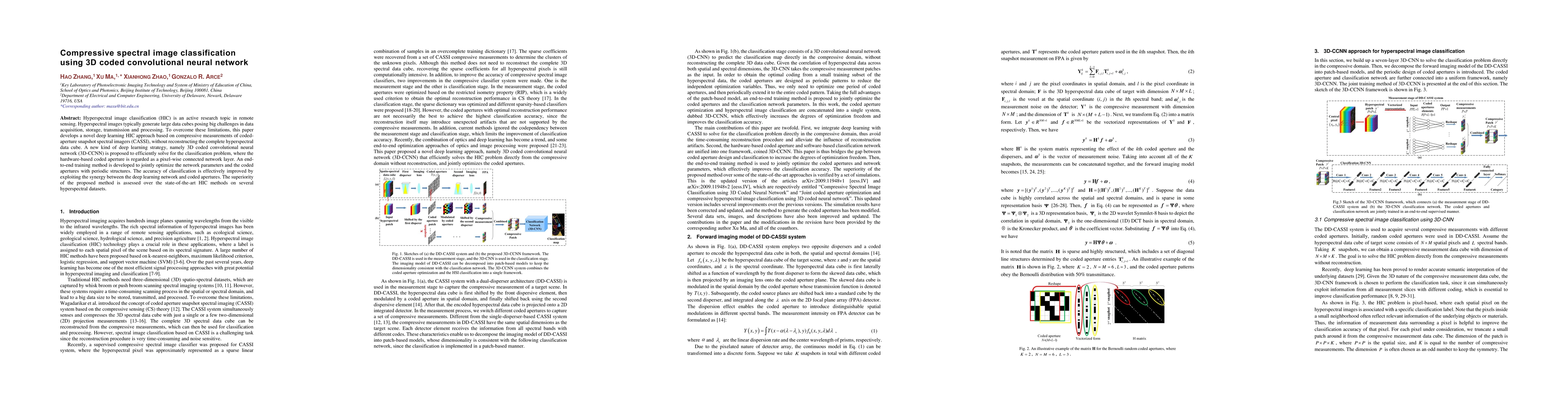 This paper proposes a 3D coded convolutional neural network (3D-CCNN) for hyperspectral image classification using compressive measurements from coded-aperture snapshot spectral imagers (CASSI), improving classification accuracy without reconstructing the full hyperspectral data cube. The method combines deep learning with hardware-based coded apertures and achieves superior results compared to existing hyperspectral classification methods.