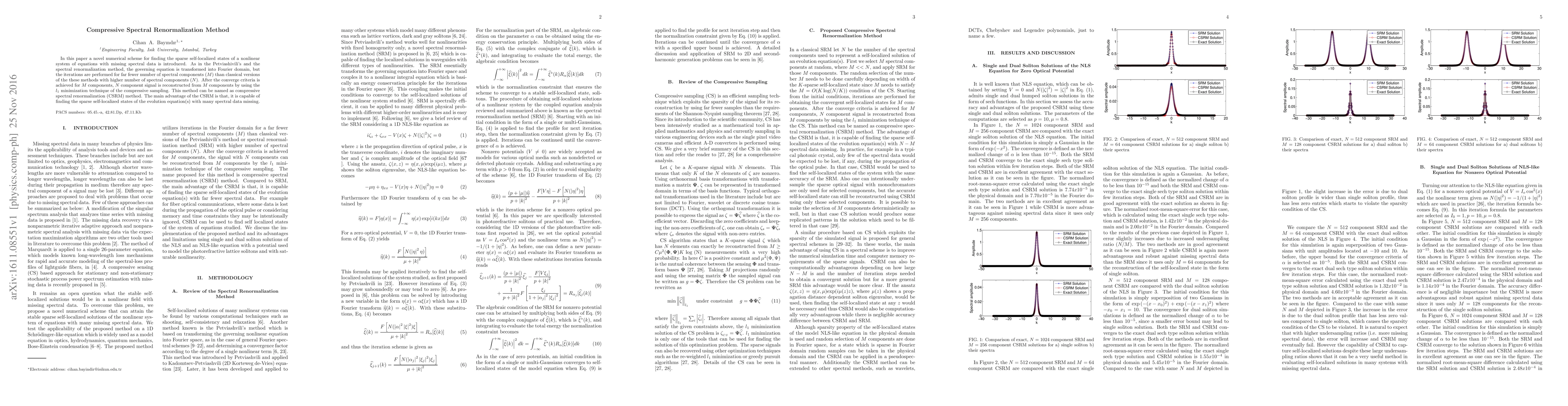 The paper introduces a novel compressive spectral renormalization method (CSRM) to find sparse self-localized states in nonlinear systems with missing spectral data by transforming the governing equation into the Fourier domain and using fewer iterations. It reconstructs the full signal using l1 minimization, offering an efficient alternative to traditional methods.