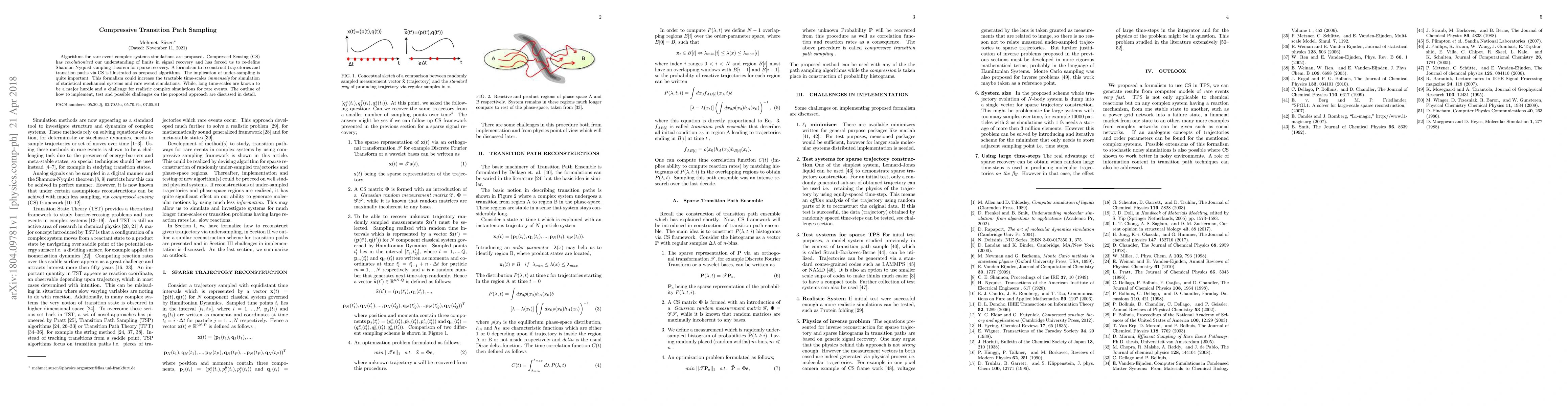 Algorithms for rare event complex systems simulations are proposed. Compressed Sensing (CS) has {\it revolutionized} our understanding of limits in signal recovery and has forced us to re-define Shannon-Nyquist sampling theorem for sparse recovery. A formalism to reconstruct trajectories and transition paths via CS is illustrated as proposed algorithms. The implication of under-sampling is quite important. This formalism could increase the tractable time-scales {\it immensely} for simulation of statistical mechanical systems and rare event simulations. While, long time-scales are known to be a major hurdle and a challenge for realistic complex simulations for rare events. The outline of how to implement, test and possible challenges on the proposed approach are discussed in detail.