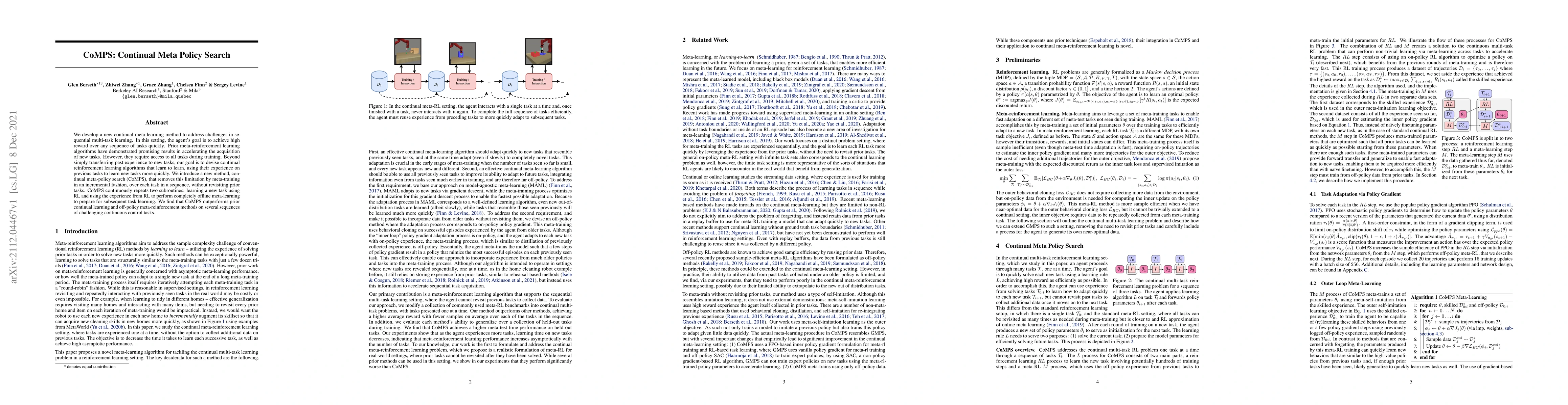 CoMPS introduces a hybrid meta-RL approach that combines off-policy importance-sampled inner loop policy gradient updates with a simple supervised outer loop objective based on imitating the best data from prior tasks produced by CoMPS itself.