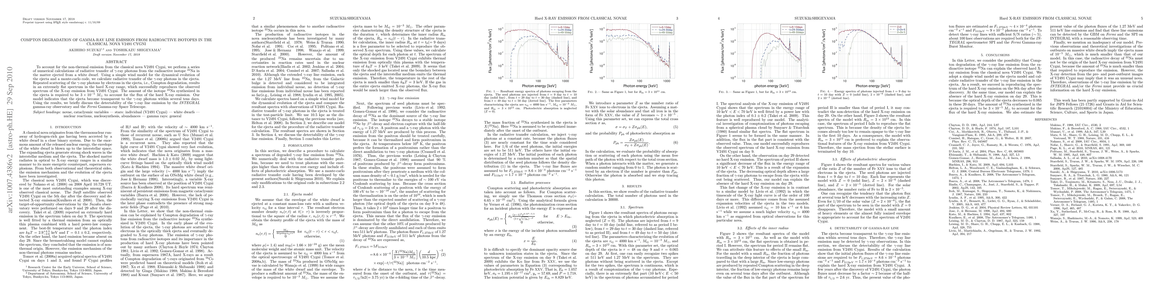 Researchers used computer simulations to show that Compton degradation of gamma-ray photons from radioactive isotopes in a white dwarf can produce flat spectra in the hard X-ray range, matching observed data from a classical nova V2491 Cygni.