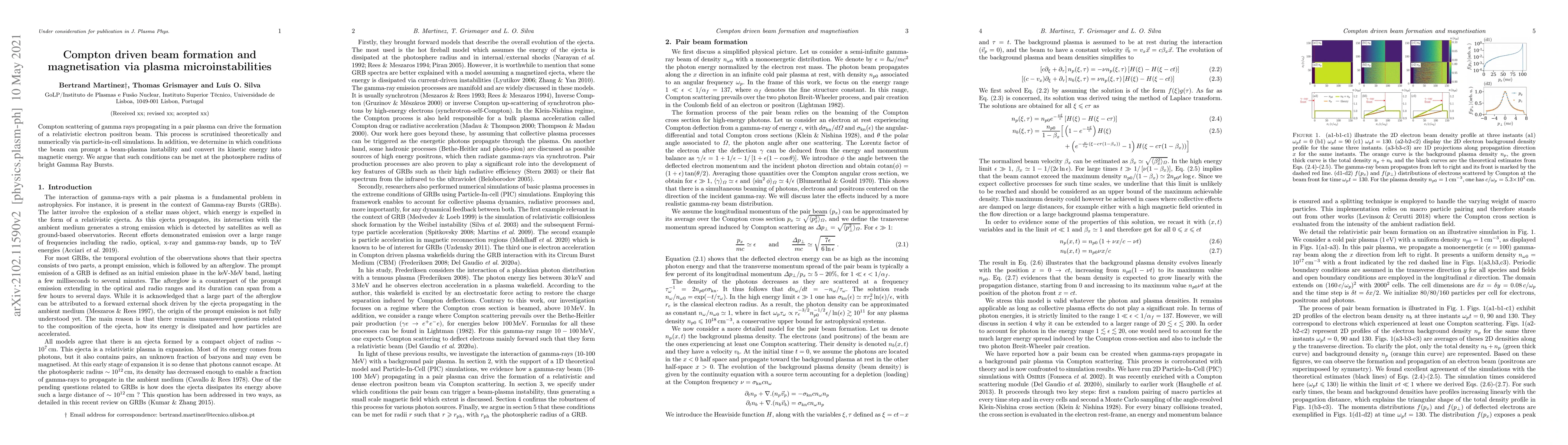 Researchers found that Compton scattering of gamma rays in plasma can create a relativistic electron-positron beam, which can prompt a beam-plasma instability and convert its kinetic energy into magnetic energy, potentially occurring at the photosphere radius of bright Gamma Ray Bursts.