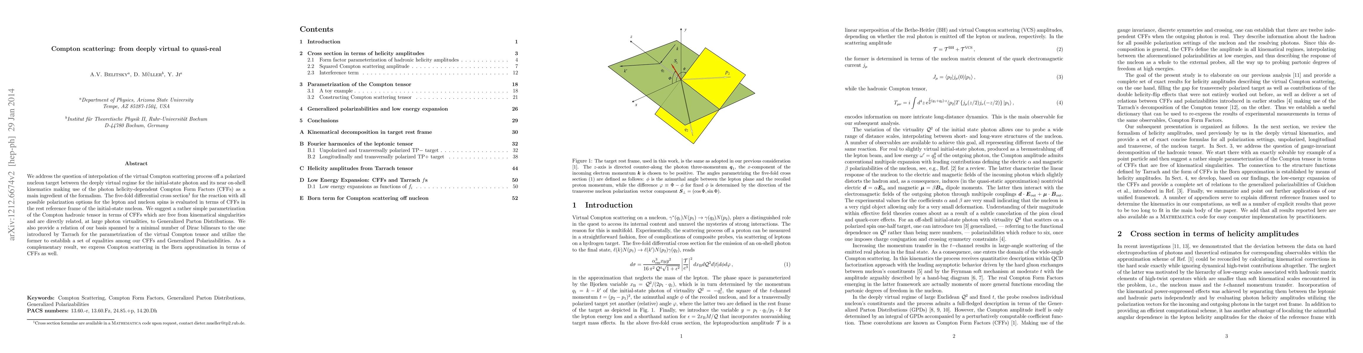 We address the question of interpolation of the virtual Compton scattering process off a polarized nucleon target between the deeply virtual regime for the initial-state photon and its near on-shell kinematics making use of the photon helicity-dependent Compton Form Factors (CFFs) as a main ingredient of the formalism. The five-fold differential cross section for the reaction with all possible polarization options for the lepton and nucleon spins is evaluated in terms of CFFs in the rest reference frame of the initial-state nucleon. We suggest a rather simple parametrization of the Compton hadronic tensor in terms of CFFs which are free from kinematical singularities and are directly related, at large photon virtualities, to Generalized Parton Distributions. We also provide a relation of our basis spanned by a minimal number of Dirac bilinears to the one introduced by Tarrach for the parametrization of the virtual Compton tensor and utilize the former to establish a set of equalities among our CFFs and Generalized Polarizabilities. As a complementary result, we express Compton scattering in the Born approximation in terms of CFFs as well.