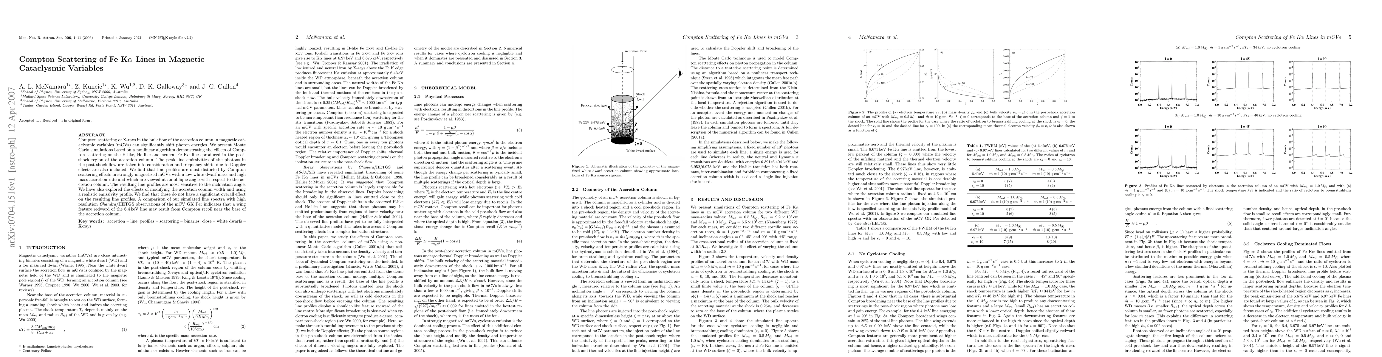 This study uses Monte Carlo simulations to analyze Compton scattering effects on Fe K alpha lines in magnetic cataclysmic variables, showing significant energy shifts due to scattering in strongly magnetized systems. The simulations reveal that line profiles are most distorted in systems with low white dwarf mass, high accretion rate, and oblique viewing angles, with inclination angle being a key factor.