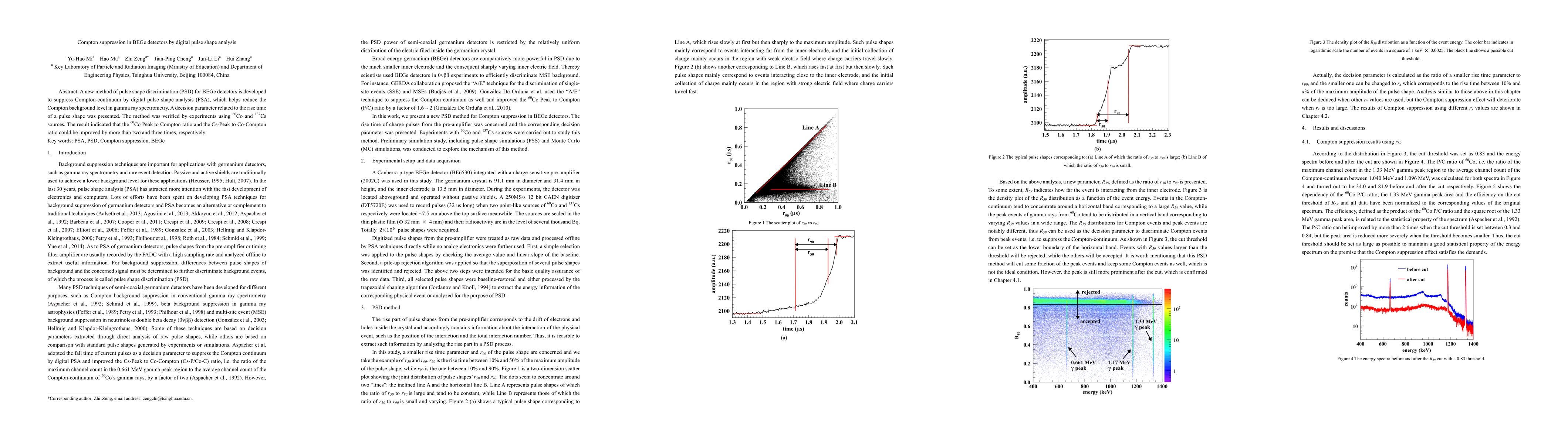 A new pulse shape discrimination method for BEGe detectors improves Compton background reduction by analyzing digital pulse shapes, increasing peak-to-compton ratios by over two and three times.
