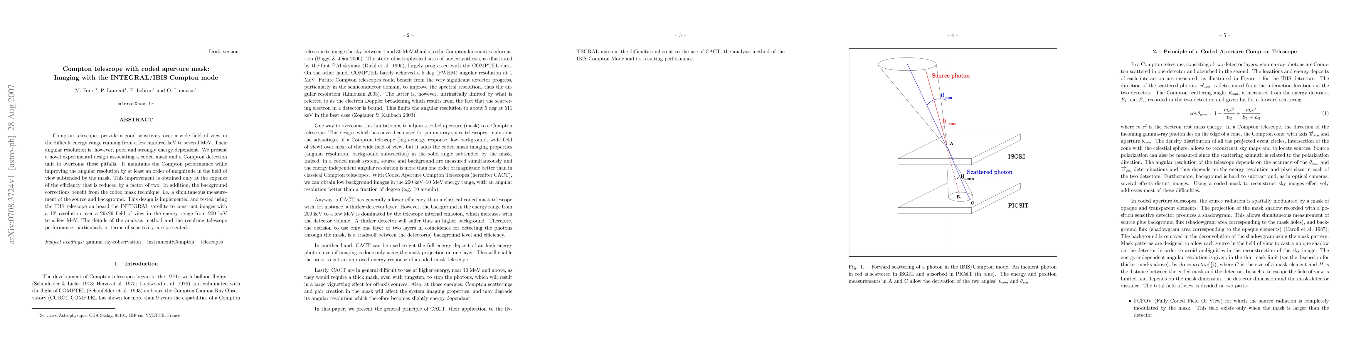 A new Compton telescope design with a coded aperture mask improves angular resolution while reducing efficiency, enabling high-sensitivity imaging over a wide field of view.