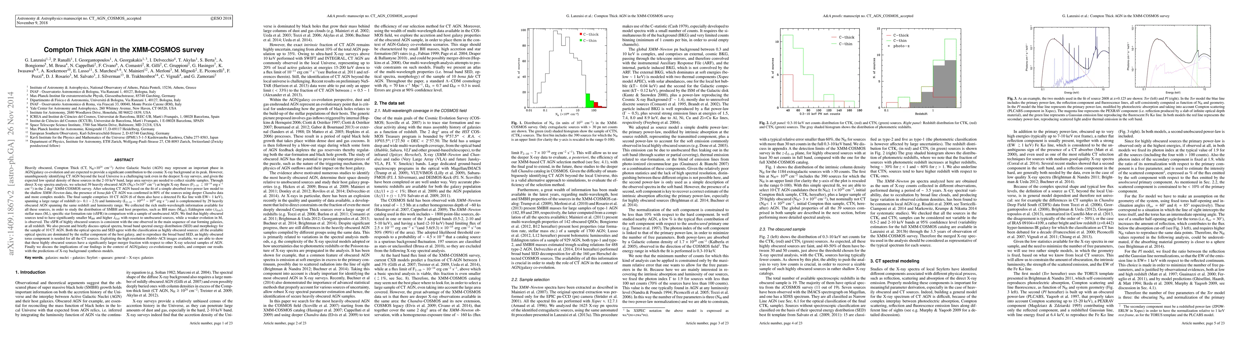 This paper identifies and analyzes 10 Compton Thick (CT) AGN in the XMM-COSMOS survey, finding they exhibit smaller black hole masses, higher Eddington ratios, and a larger merger fraction compared to unobscured AGN. The study suggests these CT AGN play a significant role in AGN/galaxy co-evolution.