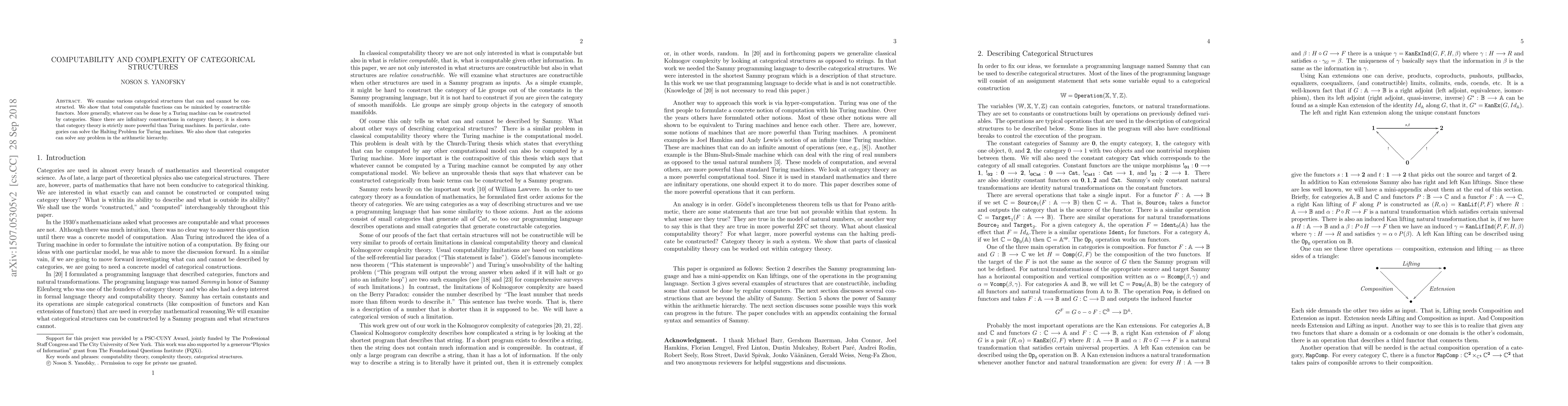 This paper explores the computability and complexity of categorical structures, demonstrating that categories can mimic total computable functions and Turing machine operations. It asserts that category theory surpasses Turing machines in power, solving the Halting Problem and any problem in the arithmetic hierarchy due to its infinitary capabilities.