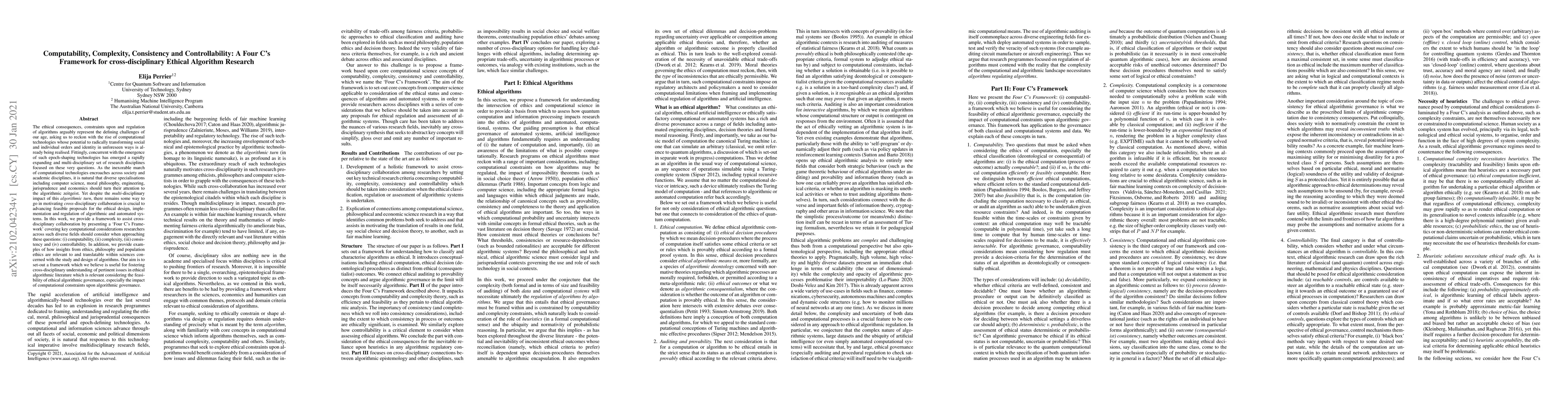 A new framework provides a four-pronged approach to ethical algorithm research, considering computability, complexity, consistency, and controllability to foster cross-disciplinary collaboration in designing and regulating algorithms.