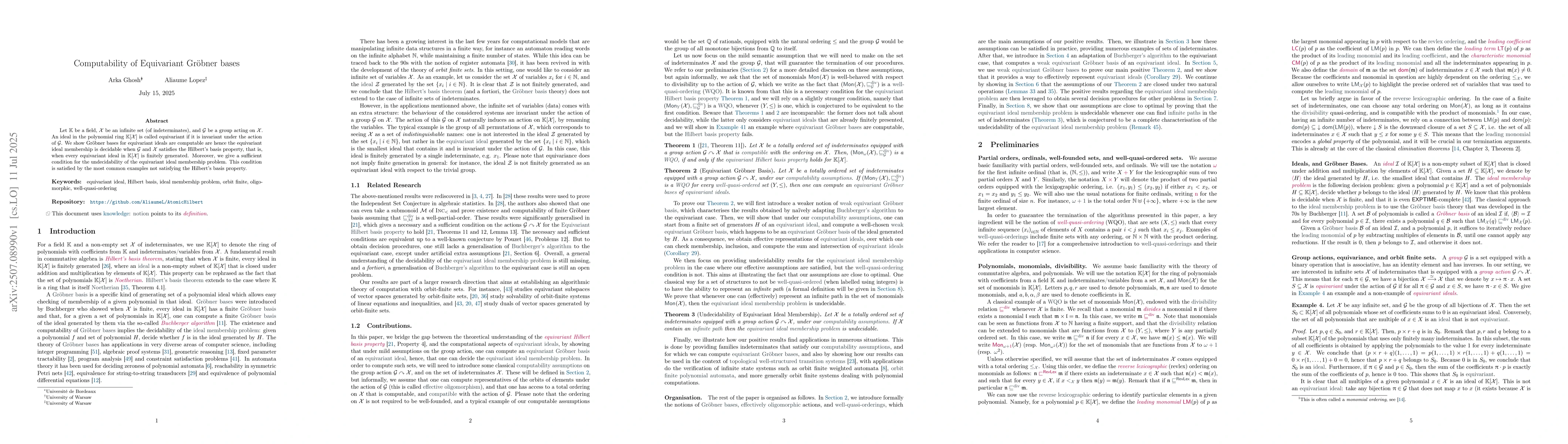 Let $\mathbb{K}$ be a field, $\mathcal{X}$ be an infinite set (of indeterminates), and $\mathcal{G}$ be a group acting on $\mathcal{X}$. An ideal in the polynomial ring $\mathbb{K}[\mathcal{X}]$ is called equivariant if it is invariant under the action of $\mathcal{G}$. We show Gr\"obner bases for equivariant ideals are computable are hence the equivariant ideal membership is decidable when $\mathcal{G}$ and $\mathcal{X}$ satisfies the Hilbert's basis property, that is, when every equivariant ideal in $\mathbb{K}[\mathcal{X}]$ is finitely generated. Moreover, we give a sufficient condition for the undecidability of the equivariant ideal membership problem. This condition is satisfied by the most common examples not satisfying the Hilbert's basis property.