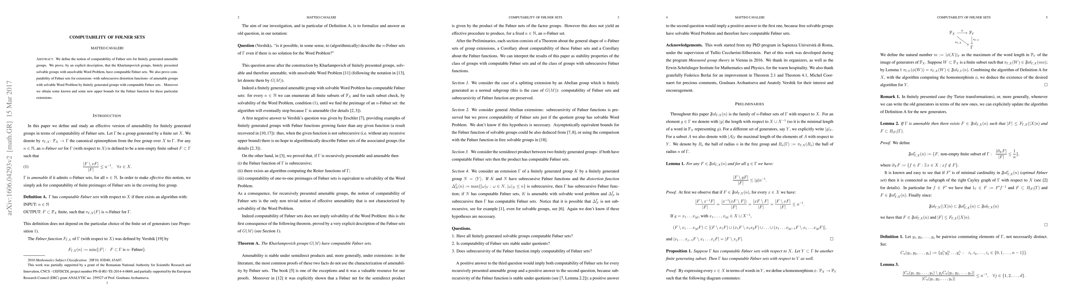 This paper defines computability for F{\o}lner sets in finitely generated amenable groups and demonstrates it in the Kharlampovich group, despite its unsolvable word problem. It also proves computability for extensions of amenable groups with solvable word problems by groups with computable F{\o}lner sets, providing new upper bounds for the F{\o}lner function in these contexts.