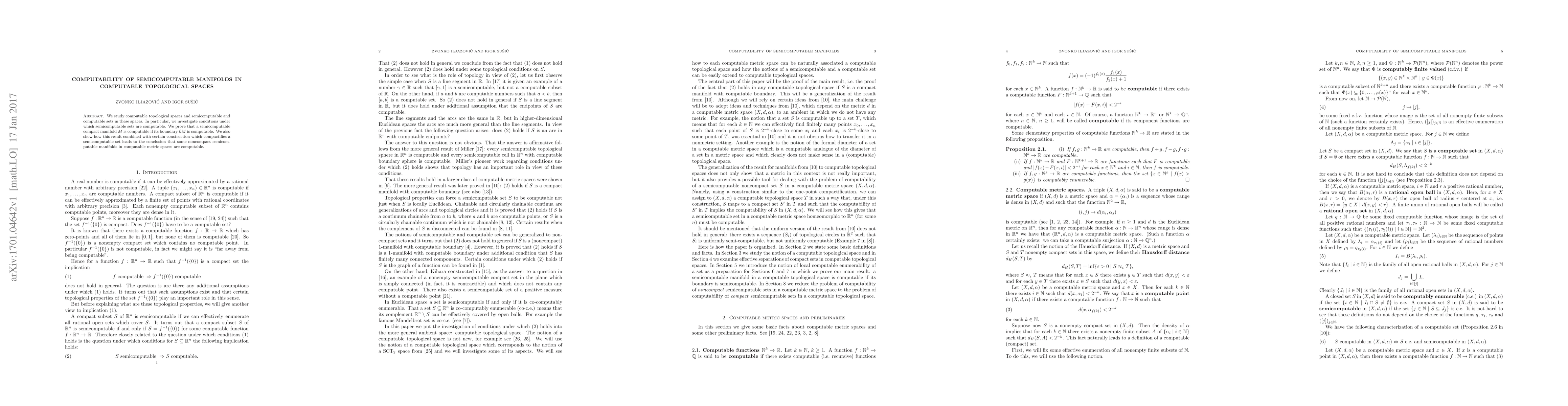 This paper explores the computability of semicomputable manifolds within computable topological spaces, proving that a semicomputable compact manifold is computable if its boundary is computable. It also demonstrates that certain compactifications can render some noncompact semicomputable manifolds computable.