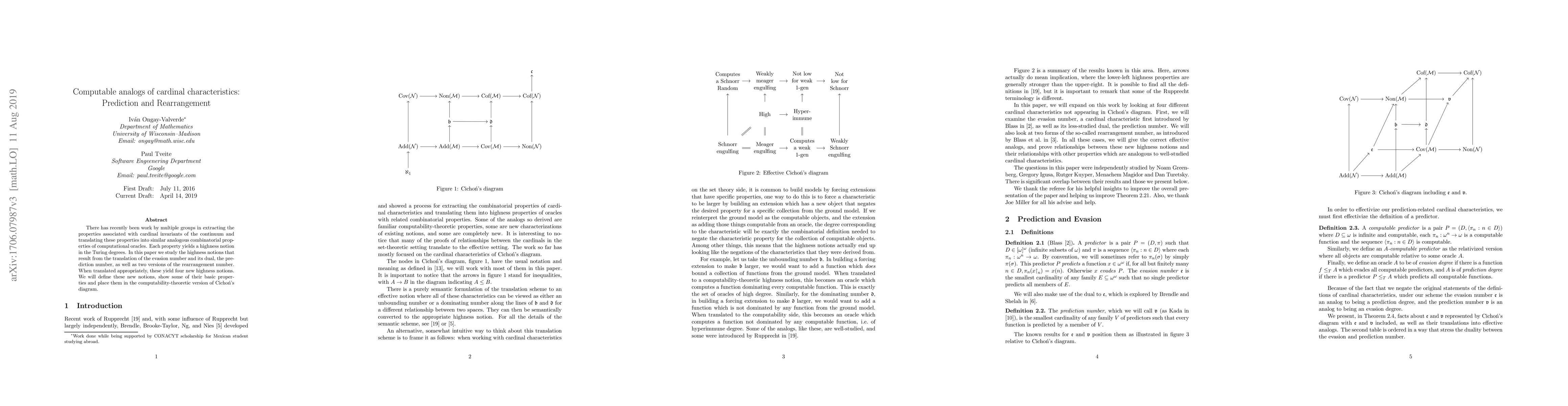 There has recently been work by multiple groups in extracting the properties associated with cardinal invariants of the continuum and translating these properties into similar analogous combinatorial properties of computational oracles. Each property yields a highness notion in the Turing degrees. In this paper we study the highness notions that result from the translation of the evasion number and its dual, the prediction number, as well as two versions of the rearrangement number. When translated appropriately, these yield four new highness notions. We will define these new notions, show some of their basic properties and place them in the computability-theoretic version of Cicho\'{n}'s diagram.