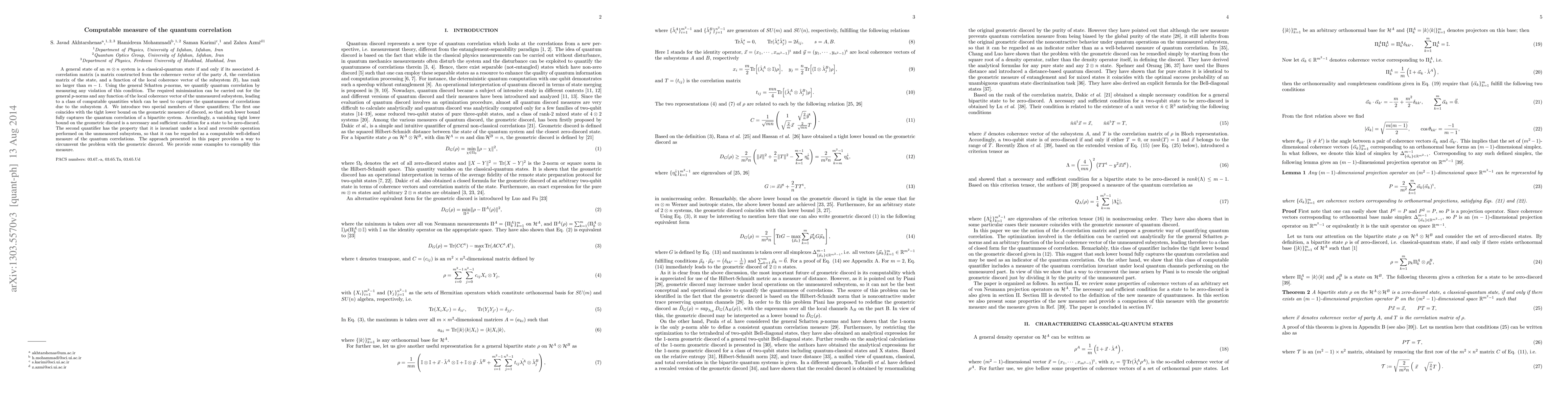 A general state of an $m\otimes n$ system is a classical-quantum state if and only if its associated $A$-correlation matrix (a matrix constructed from the coherence vector of the party $A$, the correlation matrix of the state, and a function of the local coherence vector of the subsystem $B$), has rank no larger than $m-1$. Using the general Schatten $p$-norms, we quantify quantum correlation by measuring any violation of this condition. The required minimization can be carried out for the general $p$-norms and any function of the local coherence vector of the unmeasured subsystem, leading to a class of computable quantities which can be used to capture the quantumness of correlations due to the subsystem $A$. We introduce two special members of these quantifiers; The first one coincides with the tight lower bound on the geometric measure of discord, so that such lower bound fully captures the quantum correlation of a bipartite system. Accordingly, a vanishing tight lower bound on the geometric discord is a necessary and sufficient condition for a state to be zero-discord. The second quantifier has the property that it is invariant under a local and reversible operation performed on the unmeasured subsystem, so that it can be regarded as a computable well-defined measure of the quantum correlations. The approach presented in this paper provides a way to circumvent the problem with the geometric discord. We provide some examples to exemplify this measure.