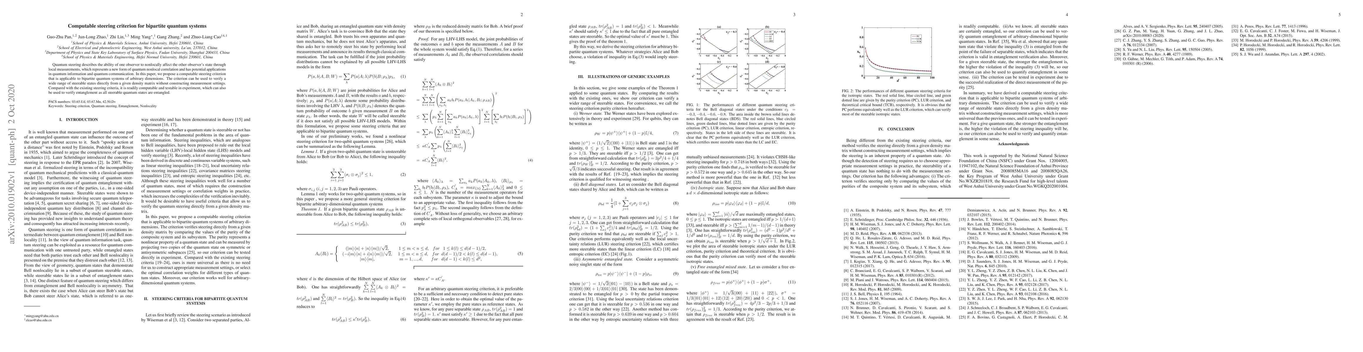 Quantum steering describes the ability of one observer to nonlocally affect the other observer's state through local measurements, which represents a new form of quantum nonlocal correlation and has potential applications in quantum information and quantum communication. In this paper, we propose a computable steering criterion that is applicable to bipartite quantum systems of arbitrary dimensions. The criterion can be used to verify a wide range of steerable states directly from a given density matrix without constructing measurement settings. Compared with the existing steering criteria, it is readily computable and testable in experiment, which can also be used to verify entanglement as all steerable quantum states are entangled.