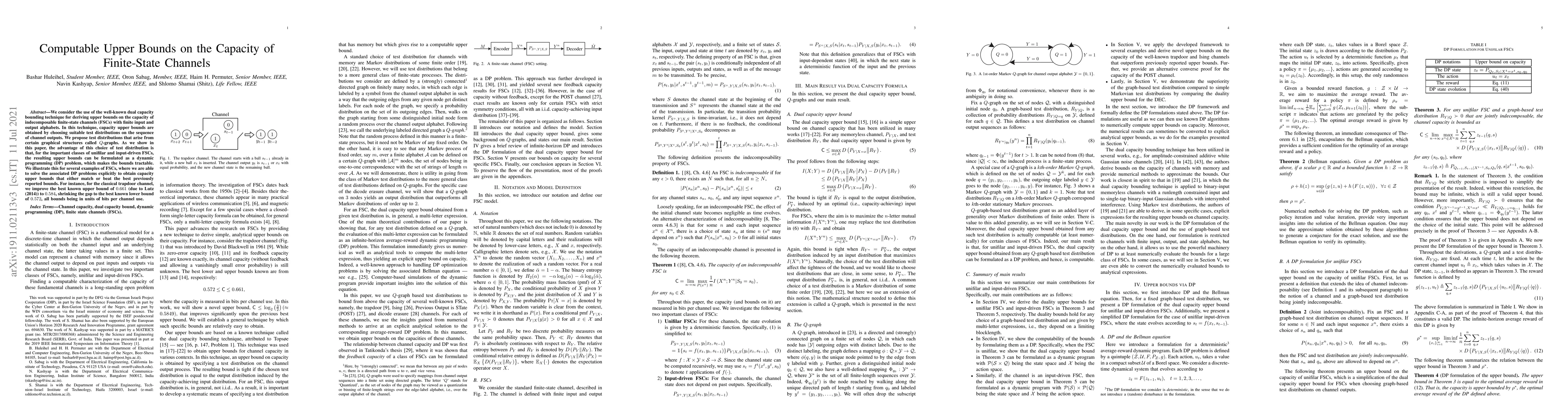 This paper proposes a novel method for deriving upper bounds on the capacity of finite-state channels using test distributions derived from Q-graphs, which simplifies the problem into a dynamic programming approach. The authors demonstrate improved upper bounds for several channel examples, notably reducing the gap for the trapdoor channel.