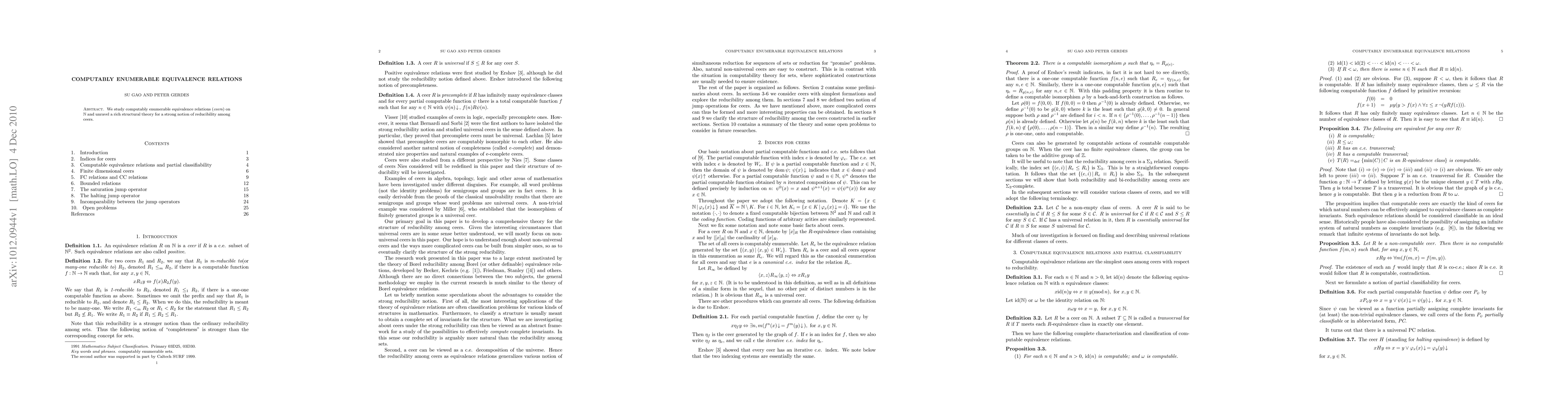 Summary: This paper explores the structure and reducibility of computably enumerable equivalence relations on the natural numbers, establishing a detailed theory for their comparative analysis.
