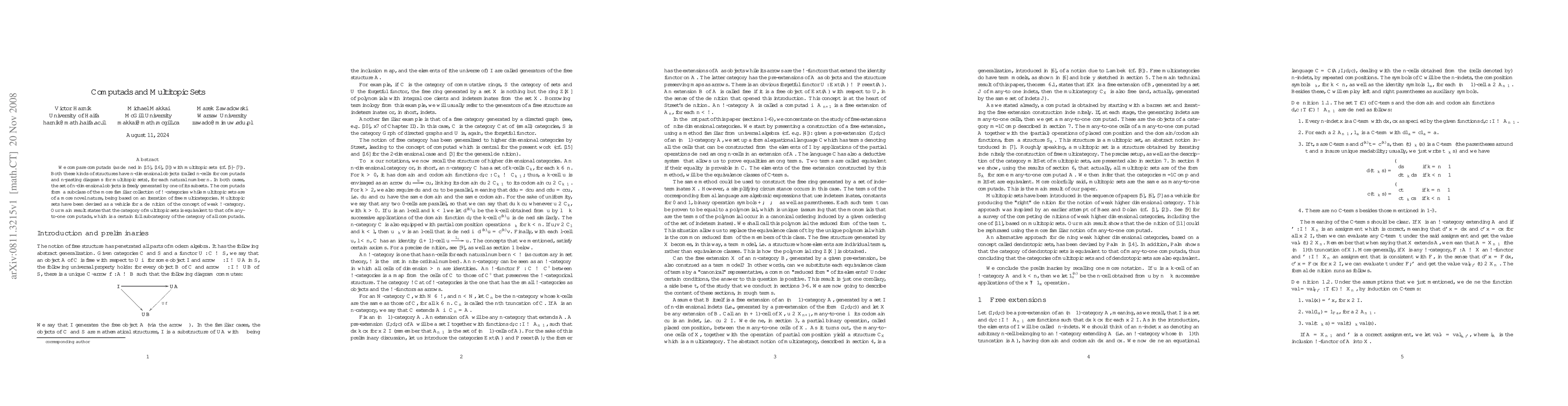 Summary: This paper compares computads and multitopic sets, showing that the category of multitopic sets is equivalent to a specific subclass of computads known as many-to-one computads. The study highlights the relationship between these structures within the context of weak omega-categories.