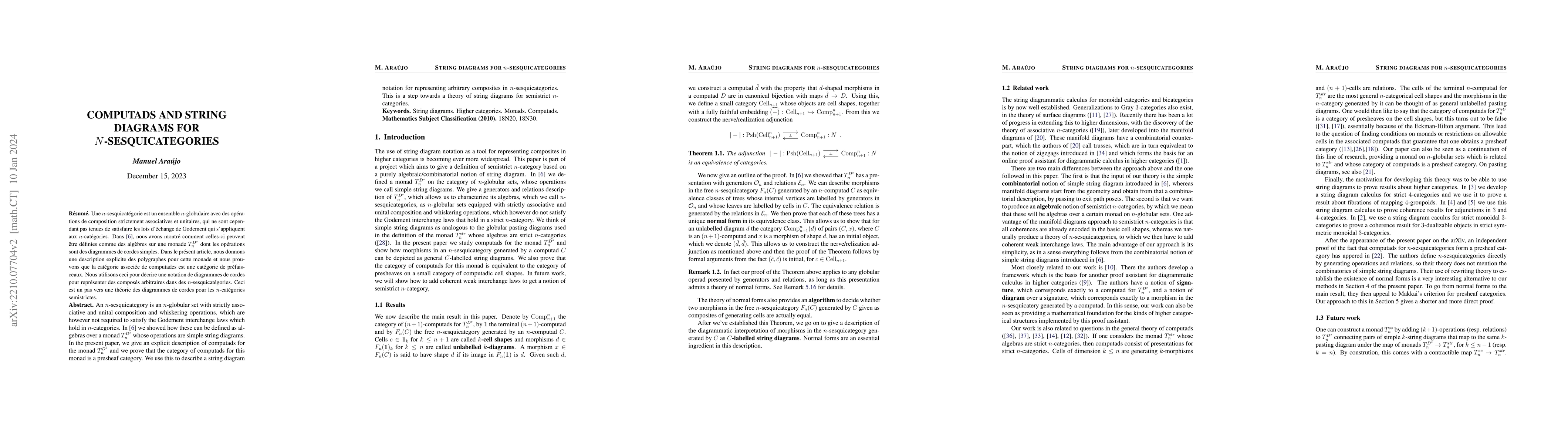 This paper explores $n$-sesquicategories, defined as $n$-globular sets with associative and unital composition but without Godement interchange laws. It introduces computads for a specific monad and proves that the category of these computads is a presheaf category, providing a string diagram notation for composites in $n$-sesquicategories.