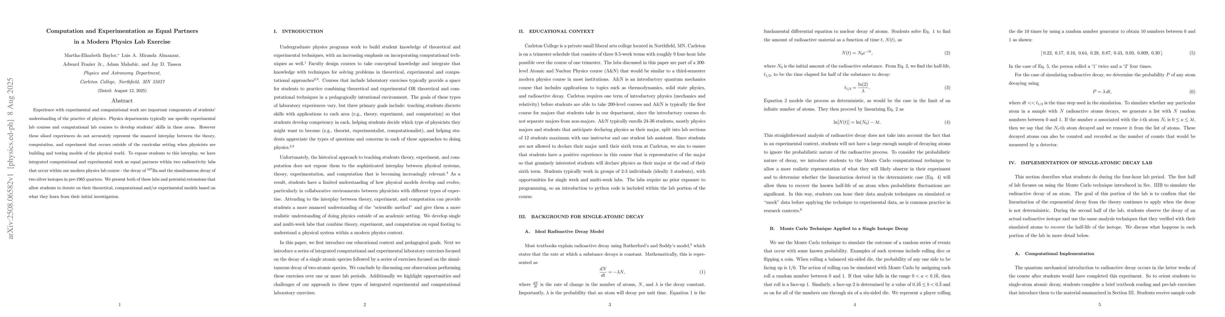 Experience with experimental and computational work are important components of students' understanding of the practice of physics. Physics departments typically use specific experimental lab courses and computational lab courses to develop students' skills in these areas. However these siloed experiences do not accurately represent the nuanced interplay between the theory, computation, and experiment that occurs outside of the curricular setting when physicists are building and testing models of the physical world. To expose students to this interplay, we have integrated computational and experimental work as equal partners within two radioactivity labs that occur within our modern physics lab course - the decay of $^{137}{\rm Ba}$ and the simultaneous decay of two silver isotopes in pre-1965 quarters. We present both of these labs and potential extensions that allow students to iterate on their theoretical, computational and/or experimental models based on what they learn from their initial investigation.