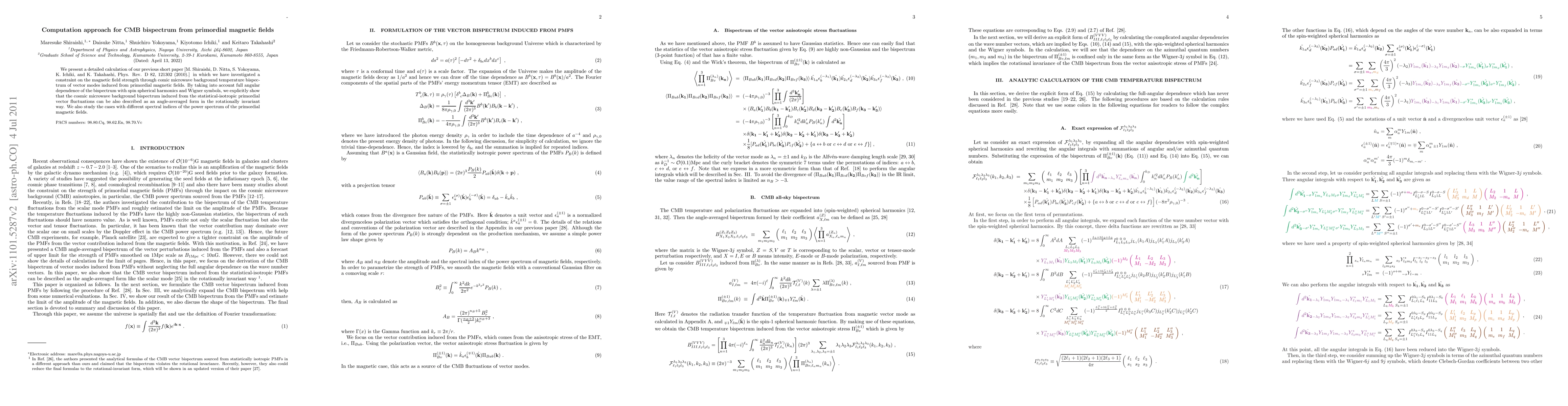 This research paper provides a comprehensive analysis of the cosmic microwave background (CMB) bispectrum to constrain the strength of primordial magnetic fields. It uses full angular calculations and Wigner symbols to show that the CMB bispectrum from these magnetic fields can be described in a rotationally invariant manner, considering different spectral indices of the magnetic field power spectrum.