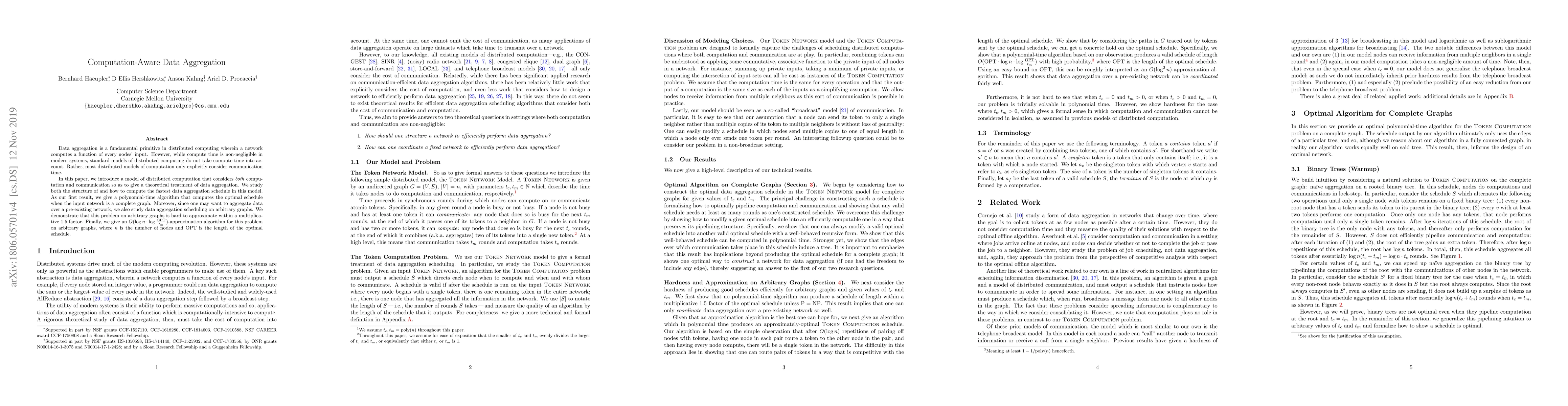 Data aggregation is a fundamental primitive in distributed computing wherein a network computes a function of every nodes' input. However, while compute time is non-negligible in modern systems, standard models of distributed computing do not take compute time into account. Rather, most distributed models of computation only explicitly consider communication time. In this paper, we introduce a model of distributed computation that considers \emph{both} computation and communication so as to give a theoretical treatment of data aggregation. We study both the structure of and how to compute the fastest data aggregation schedule in this model. As our first result, we give a polynomial-time algorithm that computes the optimal schedule when the input network is a complete graph. Moreover, since one may want to aggregate data over a pre-existing network, we also study data aggregation scheduling on arbitrary graphs. We demonstrate that this problem on arbitrary graphs is hard to approximate within a multiplicative $1.5$ factor. Finally, we give an $O(\log n \cdot \log \frac{\mathrm{OPT}}{t_m})$-approximation algorithm for this problem on arbitrary graphs, where $n$ is the number of nodes and $\mathrm{OPT}$ is the length of the optimal schedule.
