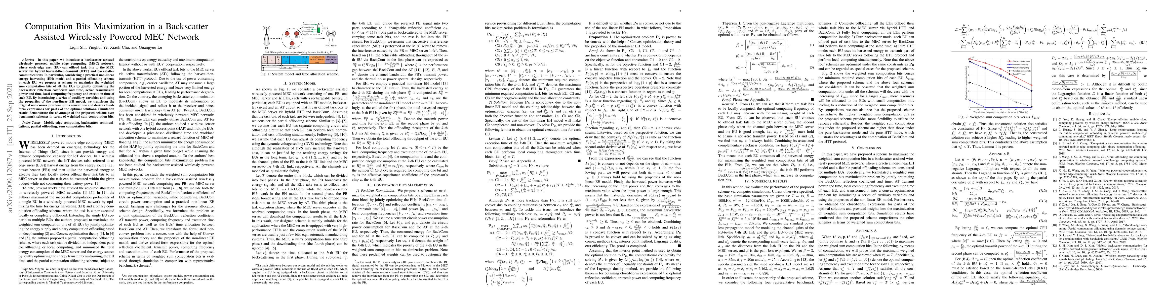 This paper proposes a method to maximize computation bits in a wirelessly powered MEC network using backscatter communication, achieving better performance than benchmark schemes through optimization of key variables.